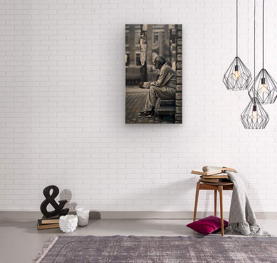 Man On The Corner Wood print